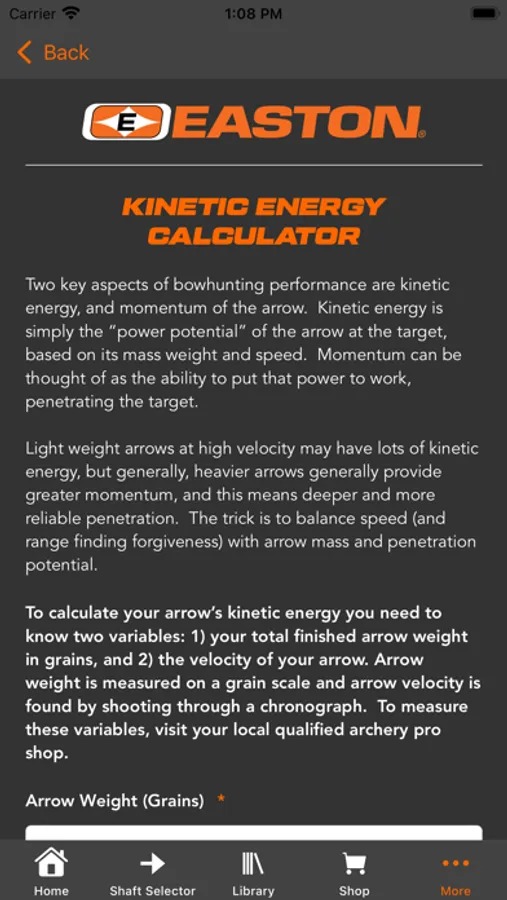 The Easton Archery app, from the leaders in arrow design since 1922, gives archers the tools they need to improve their archery experience. The app offers an arrow size selector to help archers find the right spine shaft for their bow setup, along with complete arrow and component product information to help archers prepare for hunting season or the tournament trail. An ever expanding media library offers a wide range of tutorial videos and articles to ramp up archery knowledge, helping archers to put more confidence in every shot.