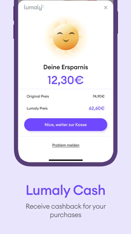 3) Geld sparen – Lumaly wendet den Gutschein mit der größten Ersparnis automatisch für dich an. Du hast bares Geld gespart!