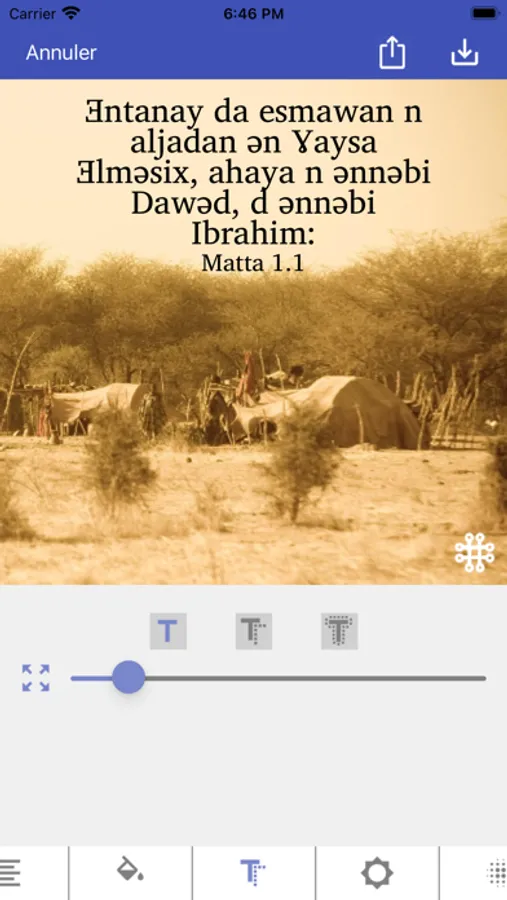 Verses on image function added. Tap a verse, then the image icon. Choose from images in the app or your own.