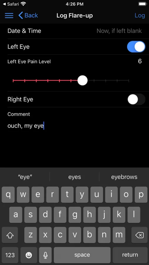 Built for patients suffering from Thygeson by a Thygeson patient to track their drop intakes, flareups, and census the genetic origins of the disease with hopes of gathering statistics to encourage research towards a cure or safer treatments.