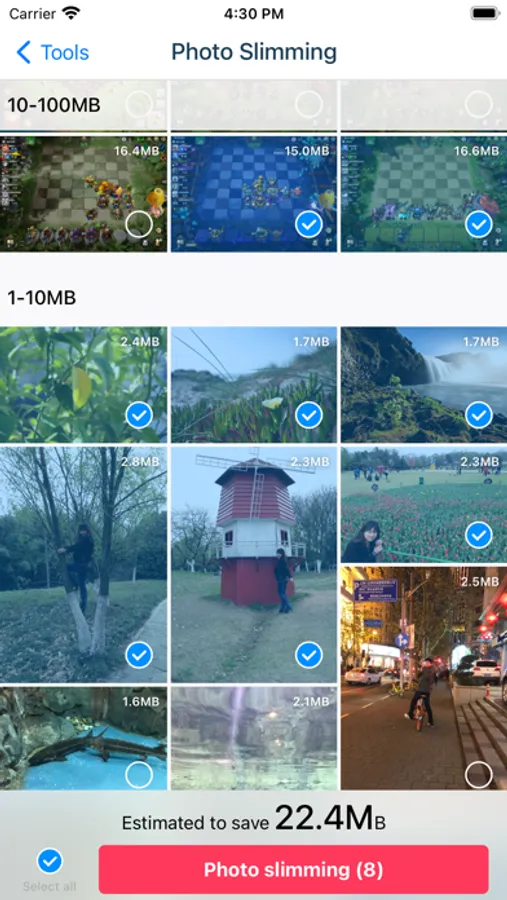 Smart Photos was born in such an environment. She can quickly analyze the album for you (these operations are performed locally), find out the resources in the album that you may want to delete or compress, and let you handle it conveniently they.