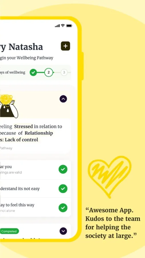 Welcome to heyy, a comprehensive well-being online therapy and self-care app designed to support you throughout your mental health journey. Developed in collaboration with mental health professionals and experts, heyy, is excited to announce our latest feature 'Wellbeing Pathways' . We believe that everyone's mental health journey is unique, and our Wellbeing Pathways use AI to identify your individual strengths and challenges and suggest activities and exercises that can help you achieve your goals.