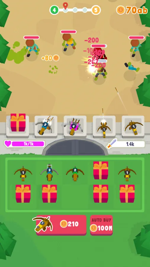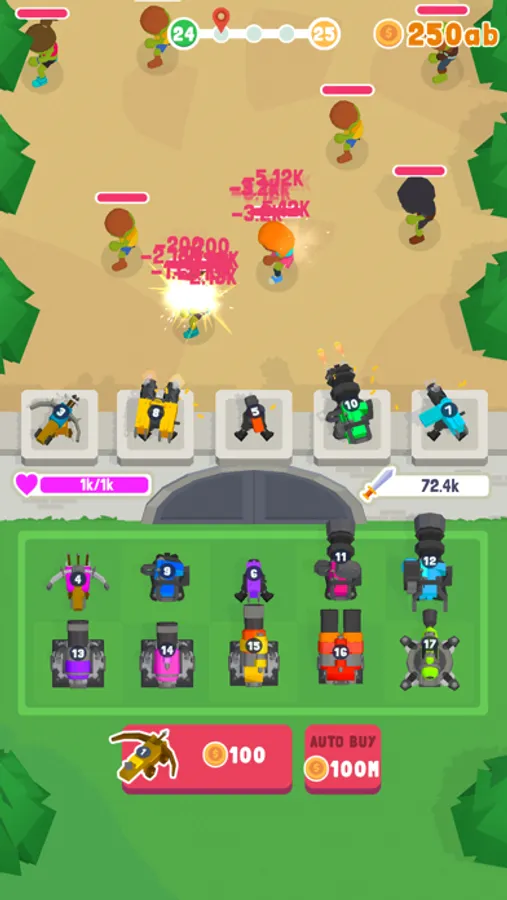 * IDLE – Collect coins as your robots shoot down enemies, even while your offline! Use coins to buy more turret soldiers to merge and upgrades to power them up.
