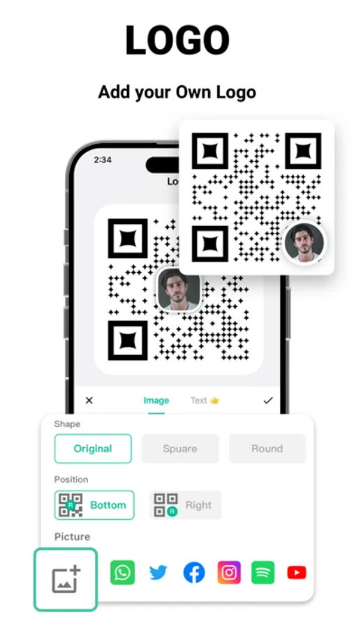 - Logo: You can also add your social portrait or company logos into your QR code to personalize it if you don’t like the logo we offer.