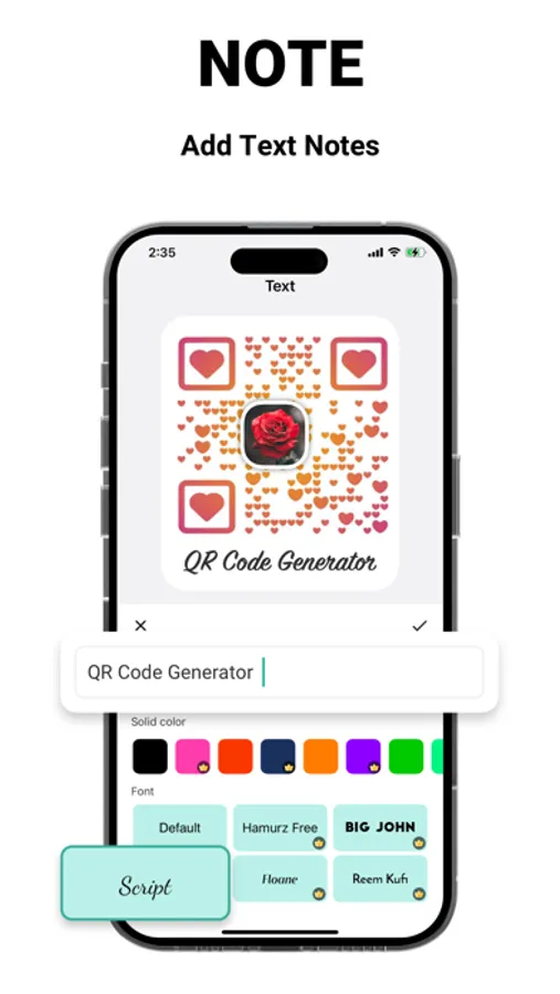 - Text: Making text notes under the QR Code you generate is what you need when you want to explain the QR Code well