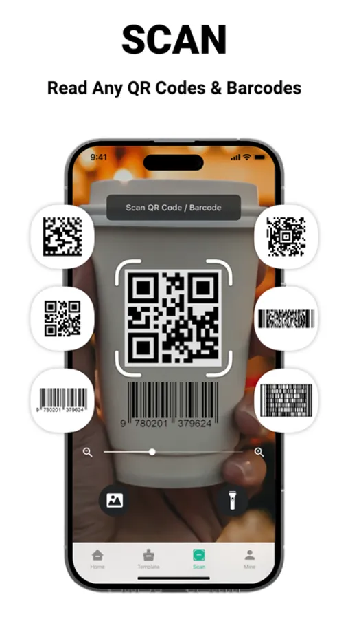 Not only a QR Code Generator but also a great QR Code Scanner. You can scan QR Codes and Barcodes of any type. Scan Code from the Photo Library is supported as well. The content can also be shared and copied to your friends. Moreover, you can scan the existing QR code and decorate it to make it your own.