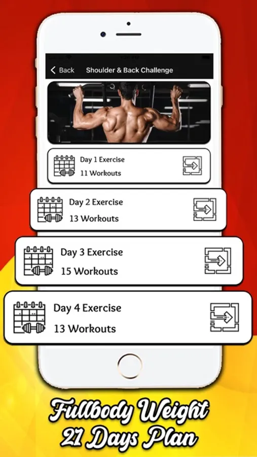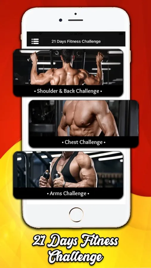 - 21 Days workout program available for Shoulder & Back challenge, Chest Challenge, Arm Challenge, Legs Challenge, Abs Challenge.