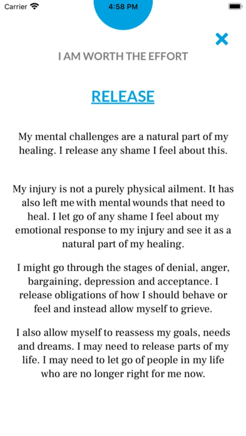 I encourage you to choose an area to focus on and pick a prompt from that category. Do this at the beginning of your day. Let its message guide your rehab exercises, your activities of daily life and your approach to the day. You can also choose to get a text reminder of the affirmation at different points in your day.