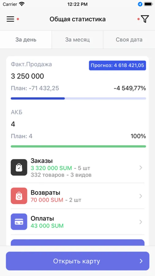 - Составление плана для агентов. Просмотр ежедневный план агентов, их прогресс и сколько доход привезет каждый агент.
