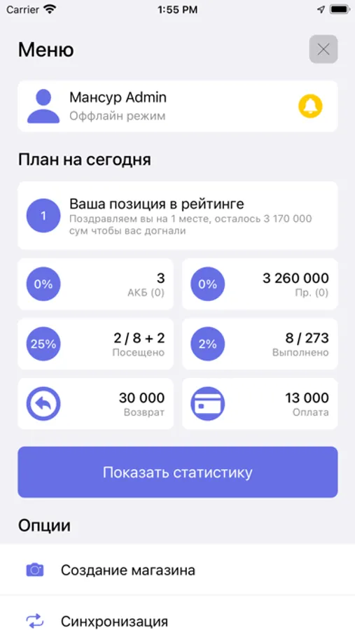 - Работа в режиме Оффлайн/Онлайн. Добавить заказ, возврат даже если нету интернета. Создание магазина в оффлайн режиме.