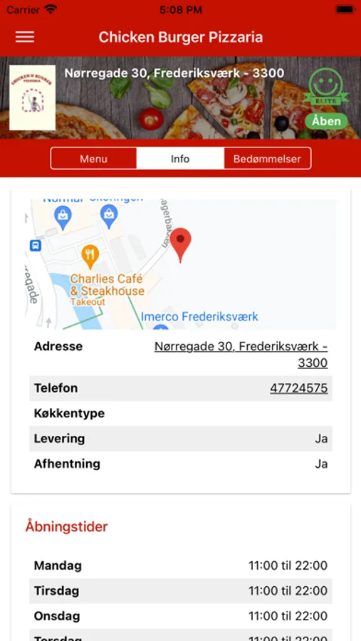 Med Chicken Burger Pizzaria app på telefonen, har du madbestilling lige ved hånden.