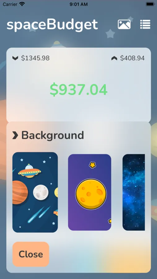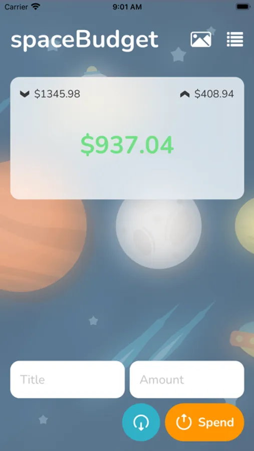 spaceBudget offers you the easiest way to track your income and expenses in just a few seconds. You stash your wallet, and while you're still at the supermarket checkout, you save your spending in spaceBudget, giving you an instant overview of your remaining money.