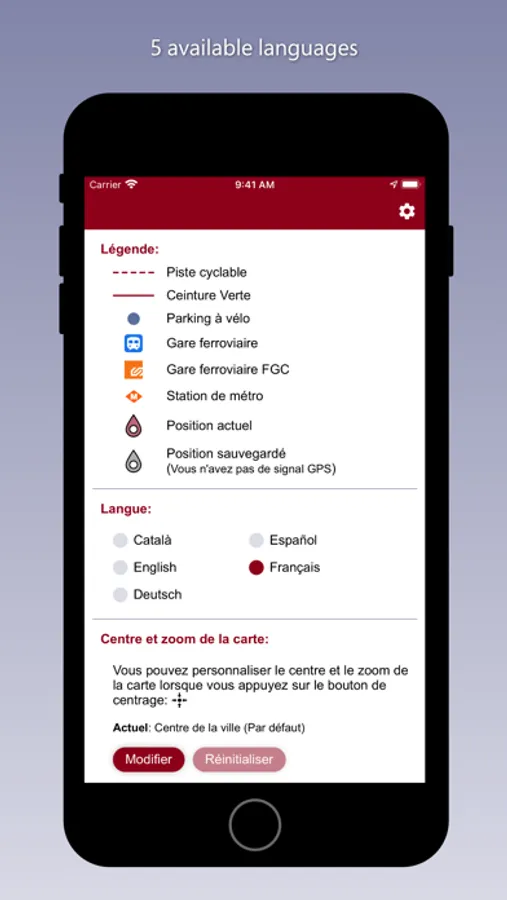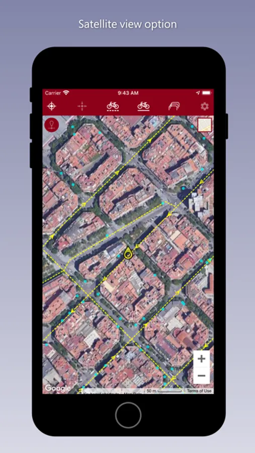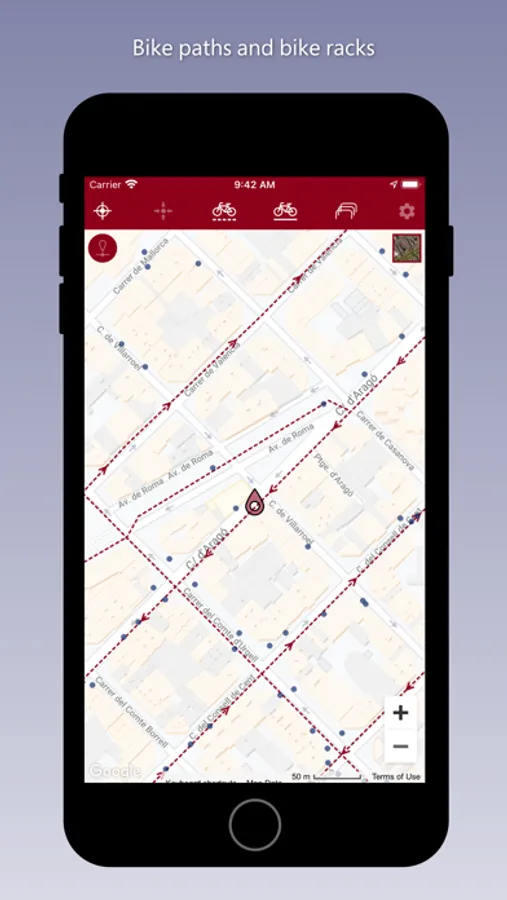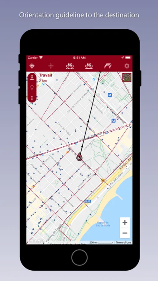 Application to consult the complete layout of the bike paths and the green ring road in the city of Barcelona.