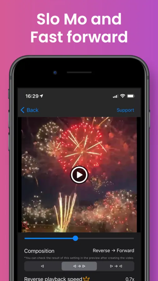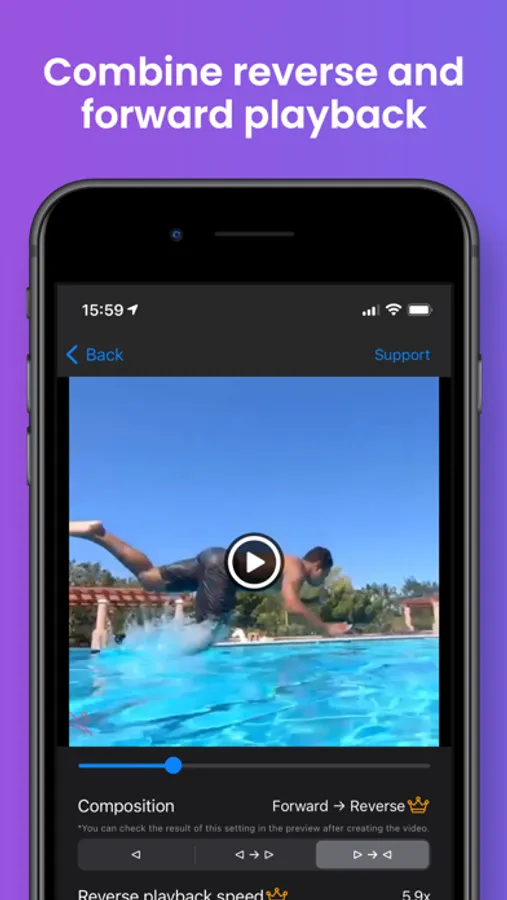 In the Pro Edition, you can set the speed of the reverse playback and the speed of the forward playback separately.
