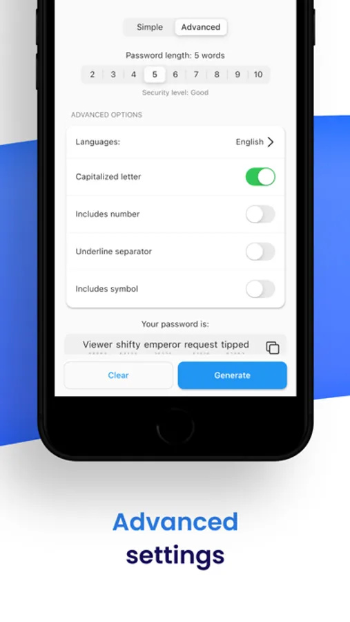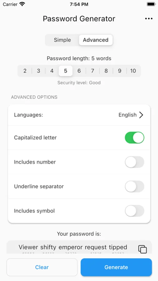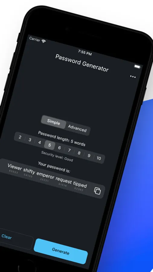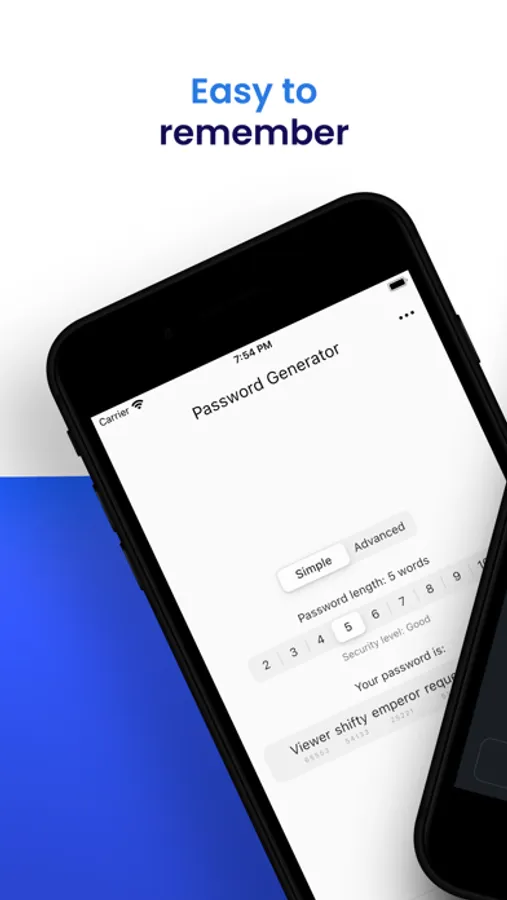 The passwords that this App generates are relatively easy to remember and to type, and are a lot better and safer than the ones a human can come up with.