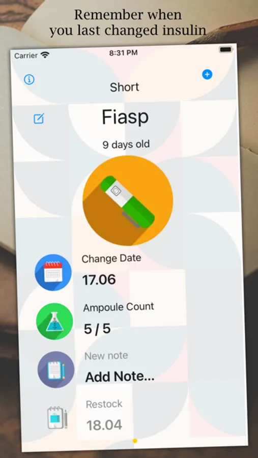 Diamem is simple and easy app for diabetic or parent. Keep up info when you last change new ampoule or changed sensor.