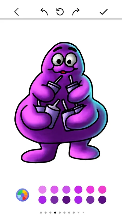 GrimaceShake Coloring Book provides a range of tools and effects to enhance your coloring masterpieces, you have the freedom to experiment and bring your imagination to life. The app also offers a zoom feature, enabling you to focus on intricate areas and add intricate details effortlessly.