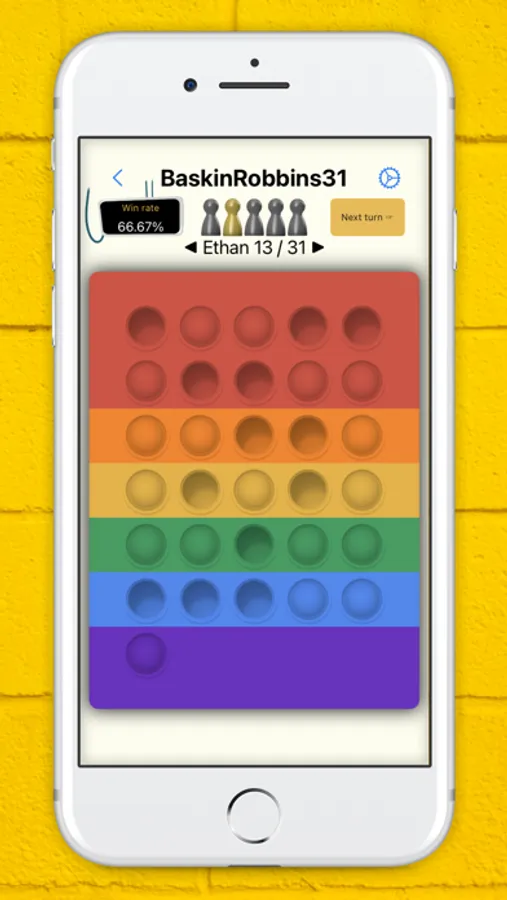 Baskin Robbins 31 - On your turn, press up to 3 desired bubbles. If you press the last bubble, you lose.