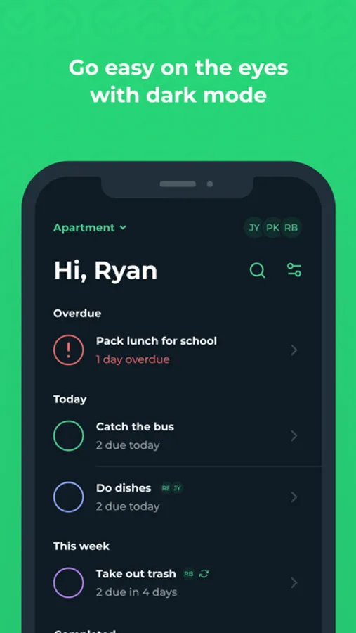 - Filter and organize your chores and tasks however you want - by color, assignee, due date, etc.