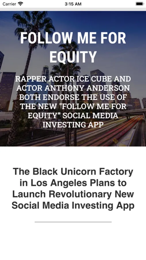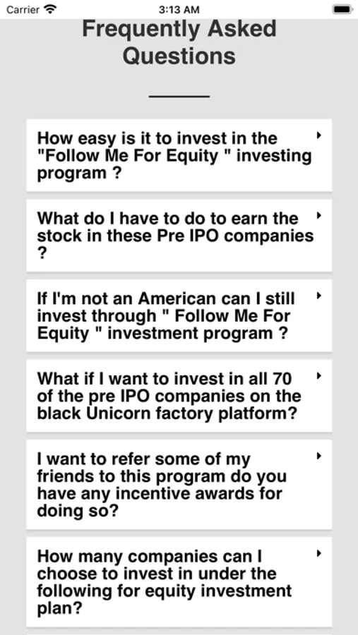 Follow Me For Equity is a social media investing app, designed for those who have who like to invest but lack the resources to do so. Follow Me For Equity offers equity in up to 70 Pre IPO companies . There is absolutely no money required to invest. . All the user has to do is commit to following the company they wish to invest in on social media for one year which is the time they expect to reach the stock market. That agreement earns them immediate stock in that company. It's just that simple. So Why be a Free social media follower when you can earn equity following companies on social media