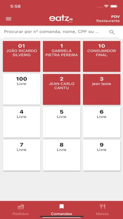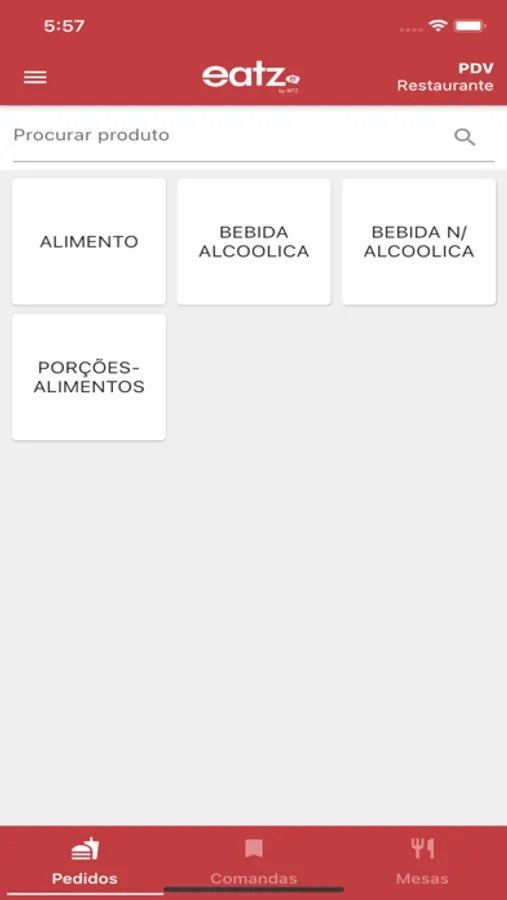 Aplicativo de gerenciamento de pedidos para garçons Eatz Restaurante