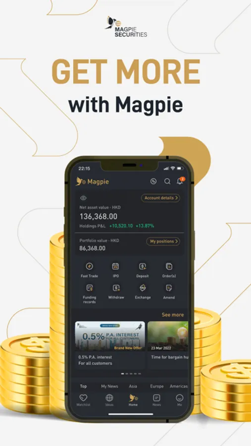 Magpie Invest, a global stock trading APP developed and operated by Magpie Securities, connecting 5 major markets around the world. Investors can trade for more than 18 hours a day, opening up more new global investment opportunities, while diversifying their investment portfolio and currency risks.