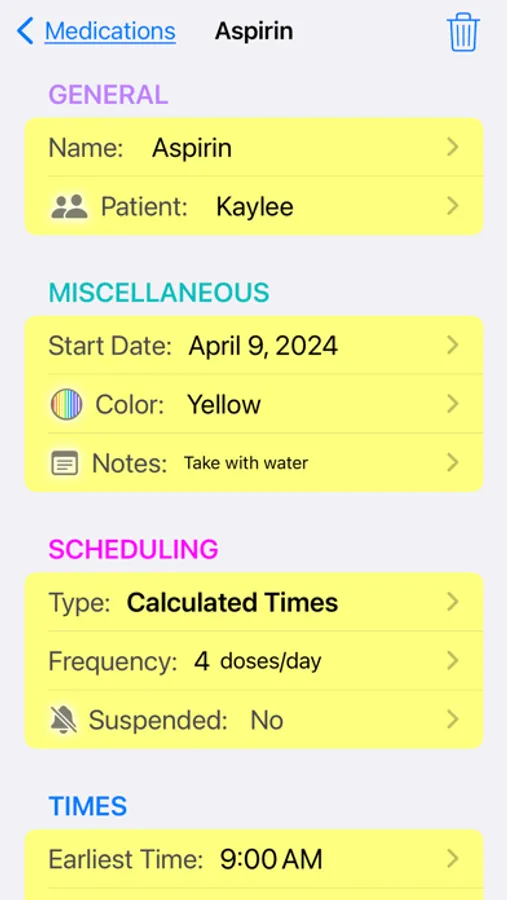 • Customization — Set different sounds, notes, and colors for each medication
