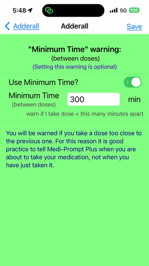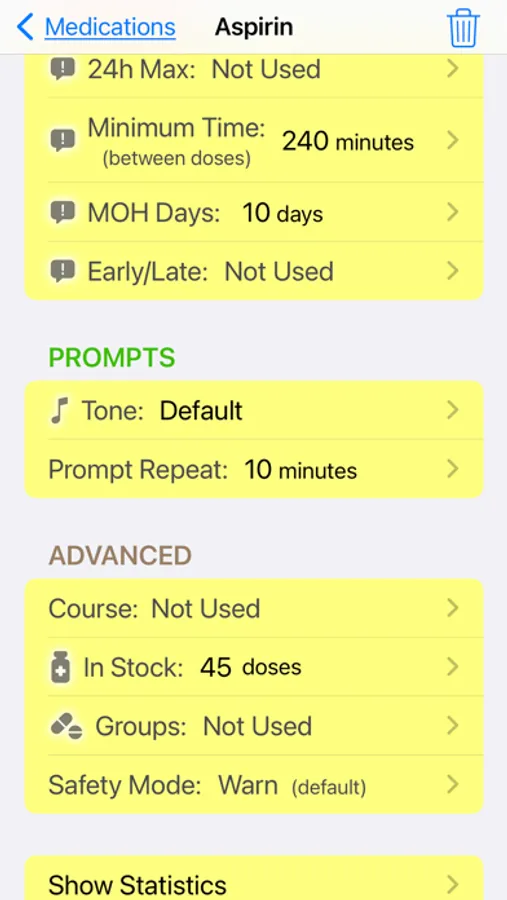 • Safety Warnings — Get alerts if you're taking doses too close together, exceeding limits, or breaking your own rules