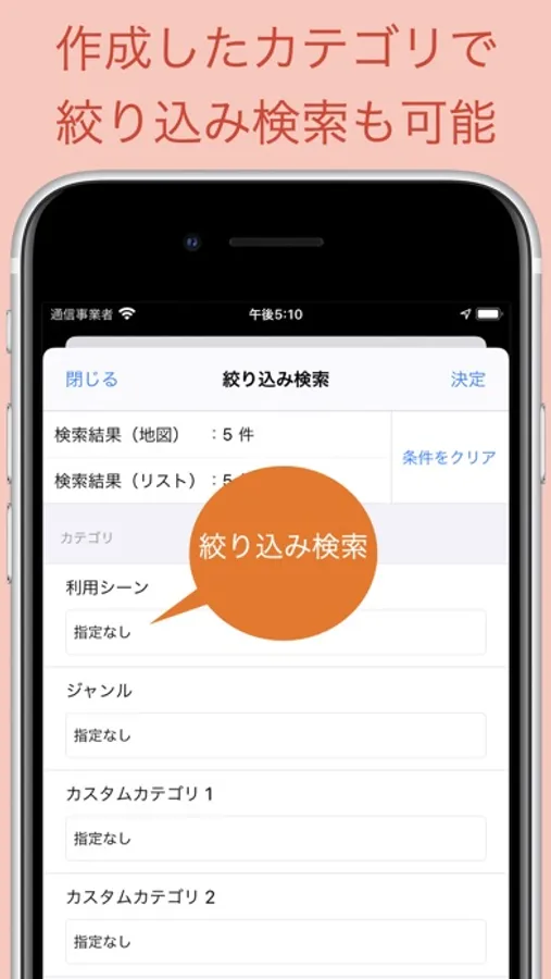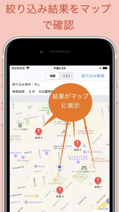 絞り込み検索できるので目的のお店や場所を探すのが簡単です。