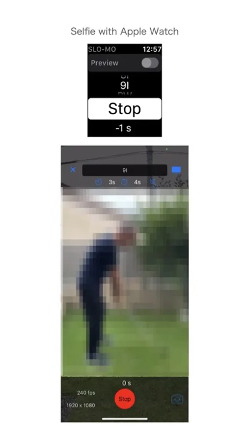 After the timer has elapsed from the start of shooting with the Watch to the shooting, the watch is vibrated to notify the start and end of shooting. The timer and shooting time can be set arbitrarily. You can play back the recorded video, check it, and export it to other applications.