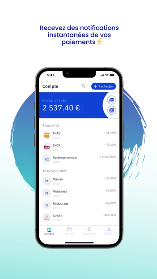 Recevez des notifications instantanées de vos paiements afin de suivre en temps réel vos dépenses