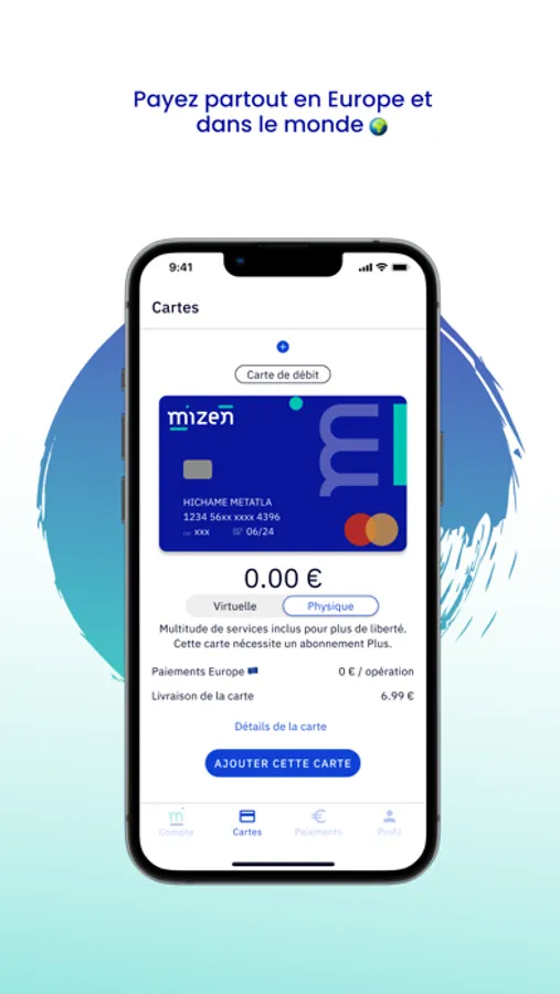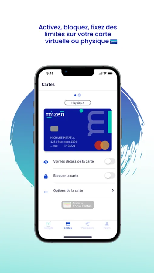 Profitez d’une carte que vous maîtrisez complètement : depuis l’application, vous pouvez commander votre carte physique ou virtuelle, l’activer, la bloquer, définir des limites et bien plus encore