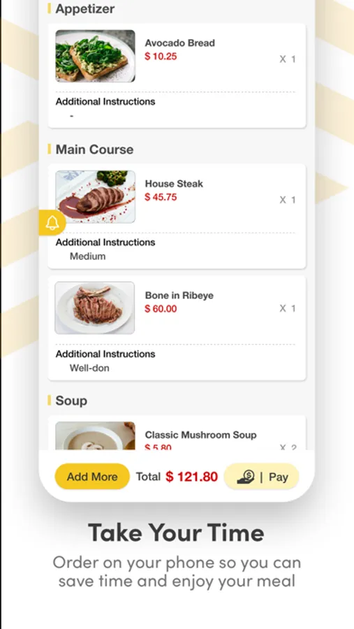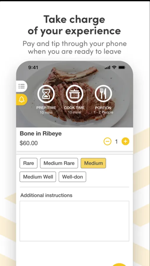 Save time in the restaurant by ordering and paying at your convenience. No more waiting on busy days. If you need help at any step of the process, use the “call waiter” feature to get answers to your questions or get recommendations.