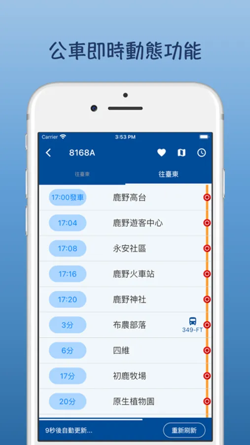 漂亮簡單的操作介面,提供公車即時動態給您!