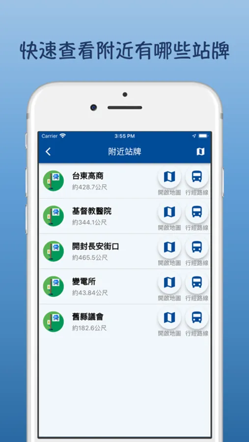 附近站牌 - 顯示您附近可搭乘站牌 !