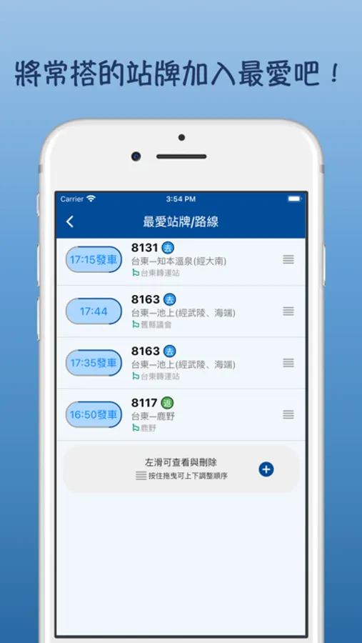 最愛站牌 - 加入您最常搭乘的站牌 !
