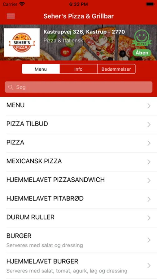 Med Seher's Pizza & Grillbar app på telefonen, har du madbestilling lige ved hånden.