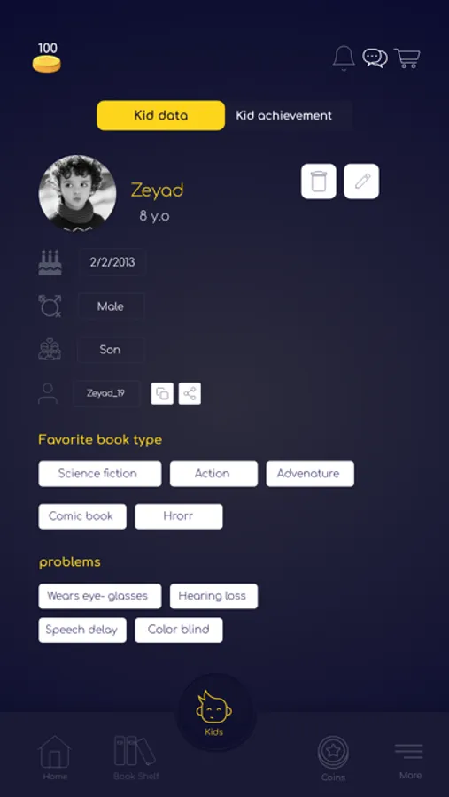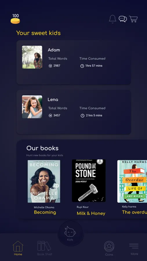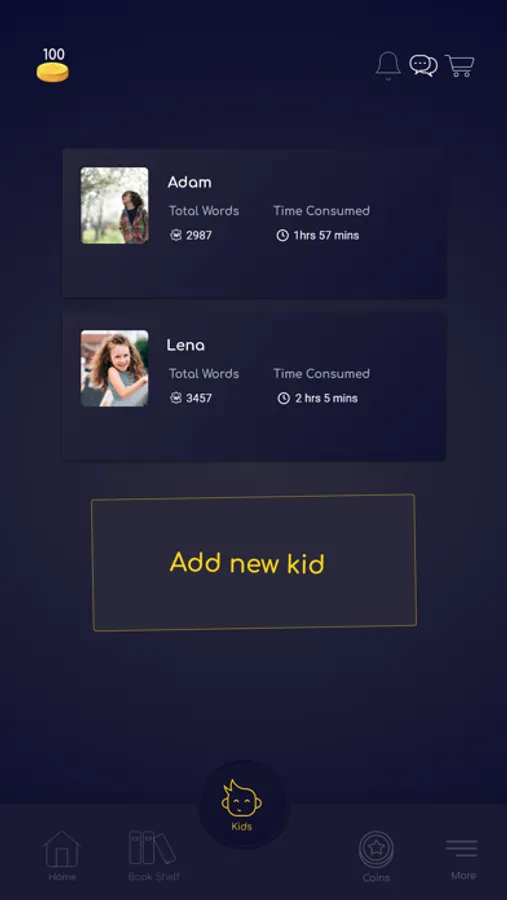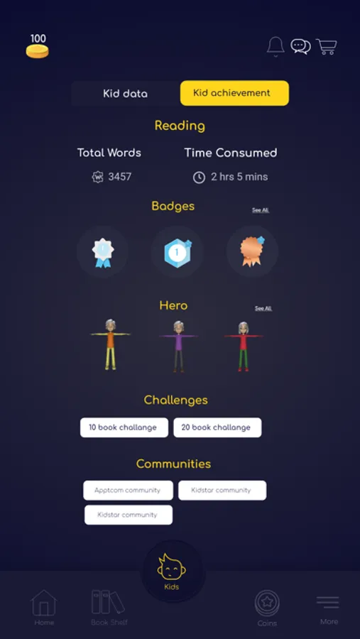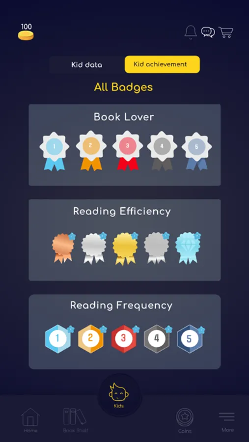o View each of your kid's reading performance and achievements while using KIDSTAR app.