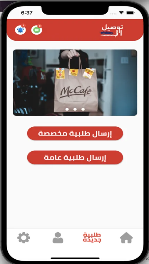 هو تطبيق الكتروني يقوم باستخدامه الزبائن والمندوبين حيث يقوم الزبون بتحديد نوع الطلبية المراد توصيلها اذا كانت طلبية عامة او طلبية مخصصة وترسل الى النظام