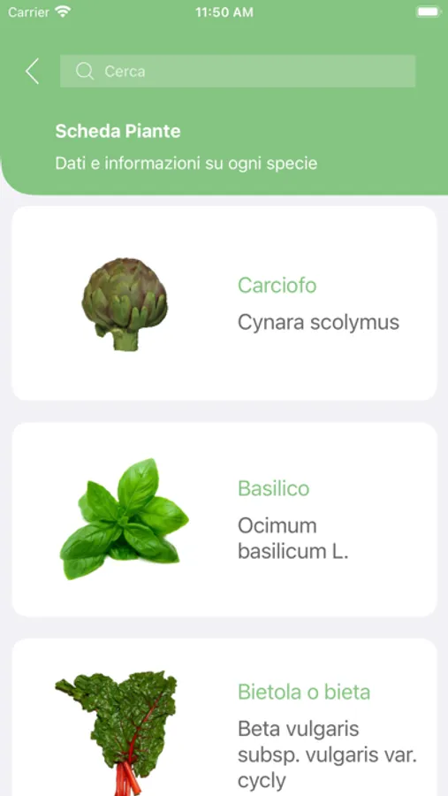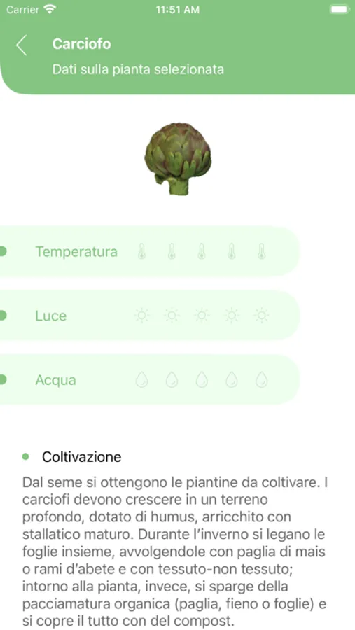 All’interno dell’applicazione è presente un database di oltre 72 ortaggi. È possibile trovare informazioni relative a: concimazione, coltivazione, periodo di semina, irrigazione, consociazioni favorevoli e sfavorevoli, malattie e animali nocivi ed eventualità particolarità.
