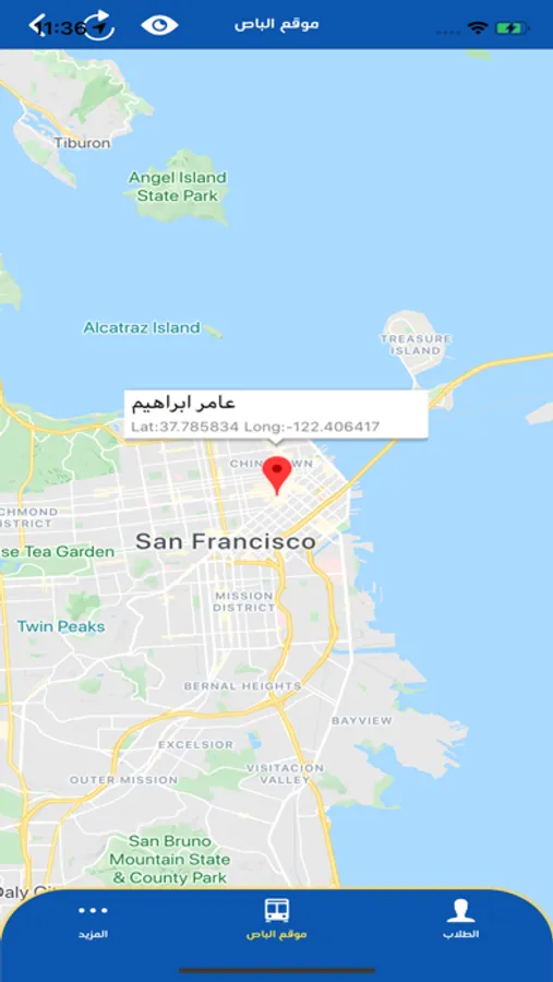 يقوم التطبيق بتتبع مكان سائق الباص وعرض اماكن التوقف الخاصة بالطلاب على الخريطة