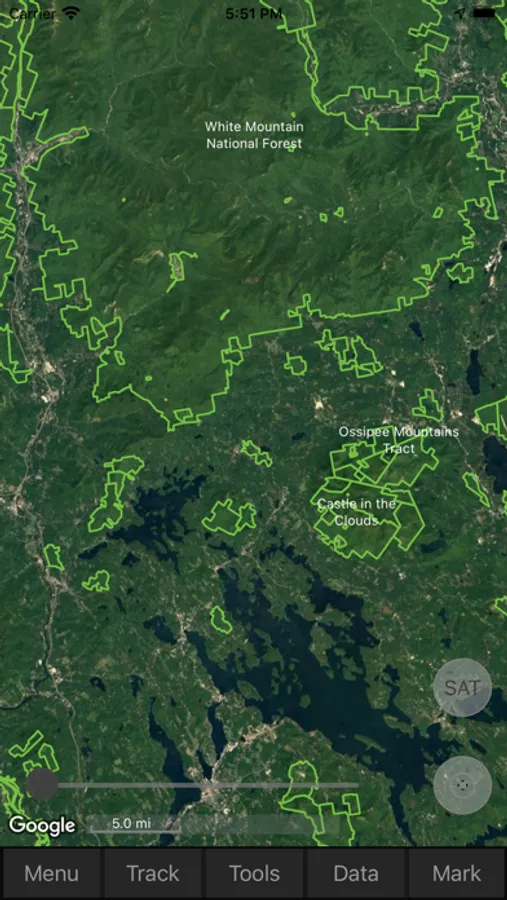 Satellite and terrain base layers from Google Maps. Switch to Apple Maps for another perspective.