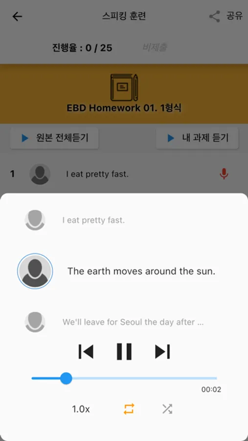 - 스피킹 훈련 / 작문 훈련