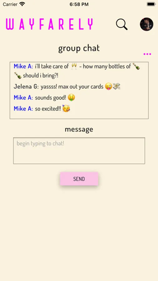 we understand that not everyone wants to exchange contact information with an internet stranger, as amazing as that fellow wayfarer may seem, so we built a fix. no need to swap numbers, we can chat right in the app! this helps you keep your private info safe until you're ready to share it.