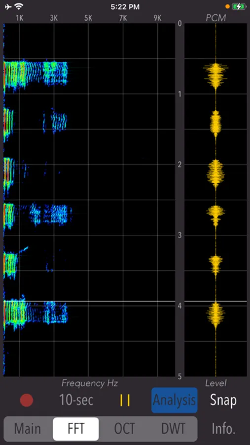 - Acoustic analysis can be performed using PCM data recorded with the iPhone's built-in microphone. It is possible to analyze 5 seconds of sound data backward from a user-specified point in time.