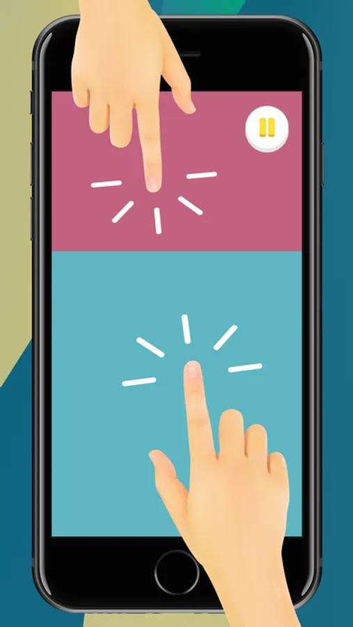 The game is set as a duel for two players. The screen is divided into two buttons. You need to tap on your button.