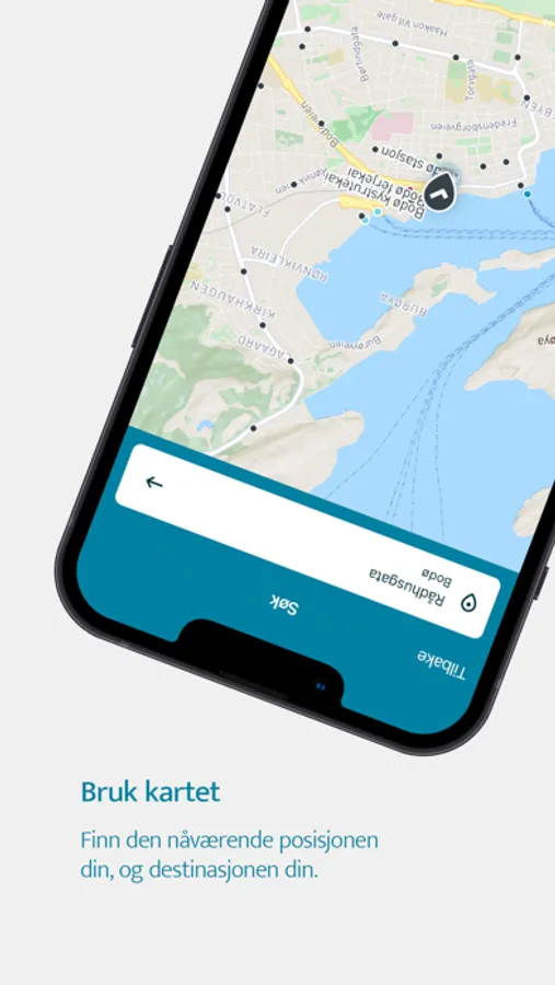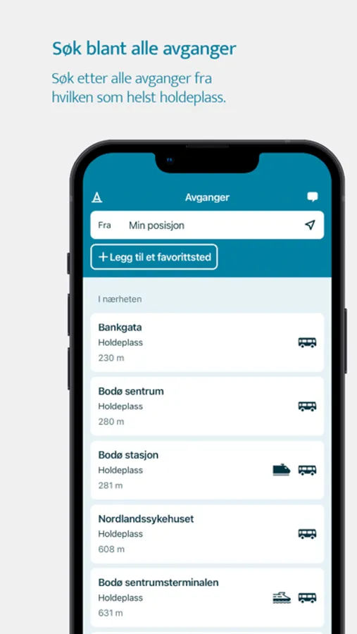- Søke på reise fra akkurat der du er ved hjelp av adresse, posisjon eller holdeplass.