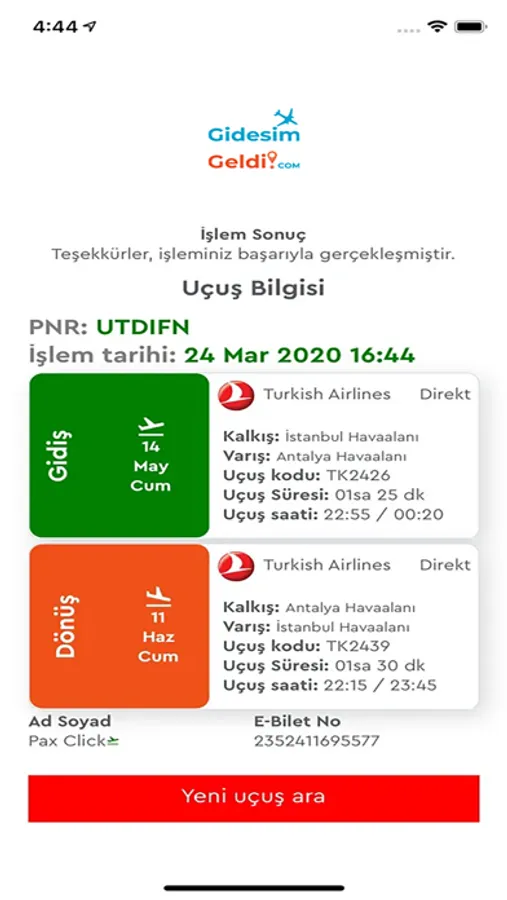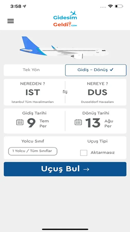 GidesimGeldi uygulaması ile dakikalar içerisinde uçak bileti satın alabilirsiniz.