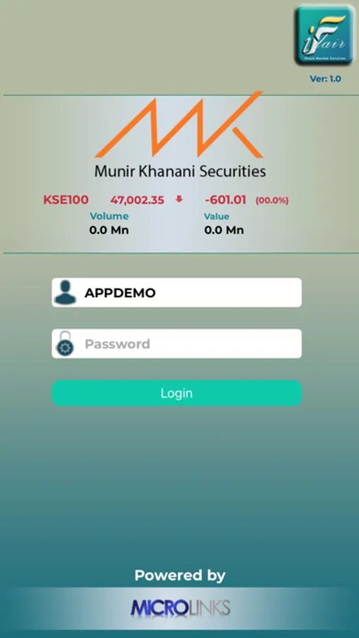 MMK Trade - iFlair is an exclusive app for Munir Khanani Securities (PVT) Ltd customers, where they can place orders during live market.