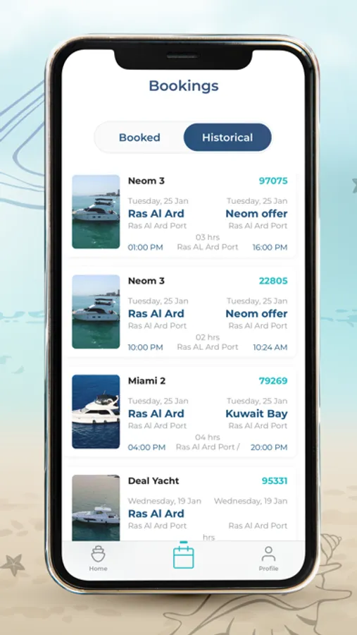 You can book a sea trip, including all food and beverages required, using very simple and smooth steps that are all available in the app.